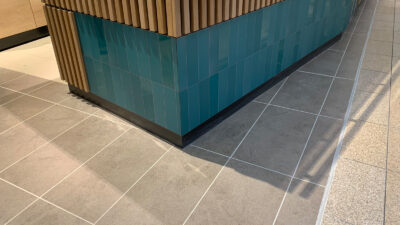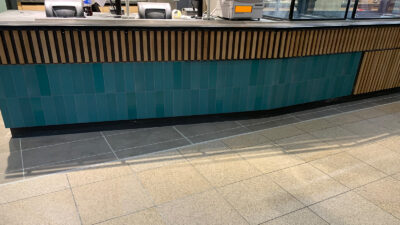 - Motifs (e.g., coffee cup) executed as vinyl lettering