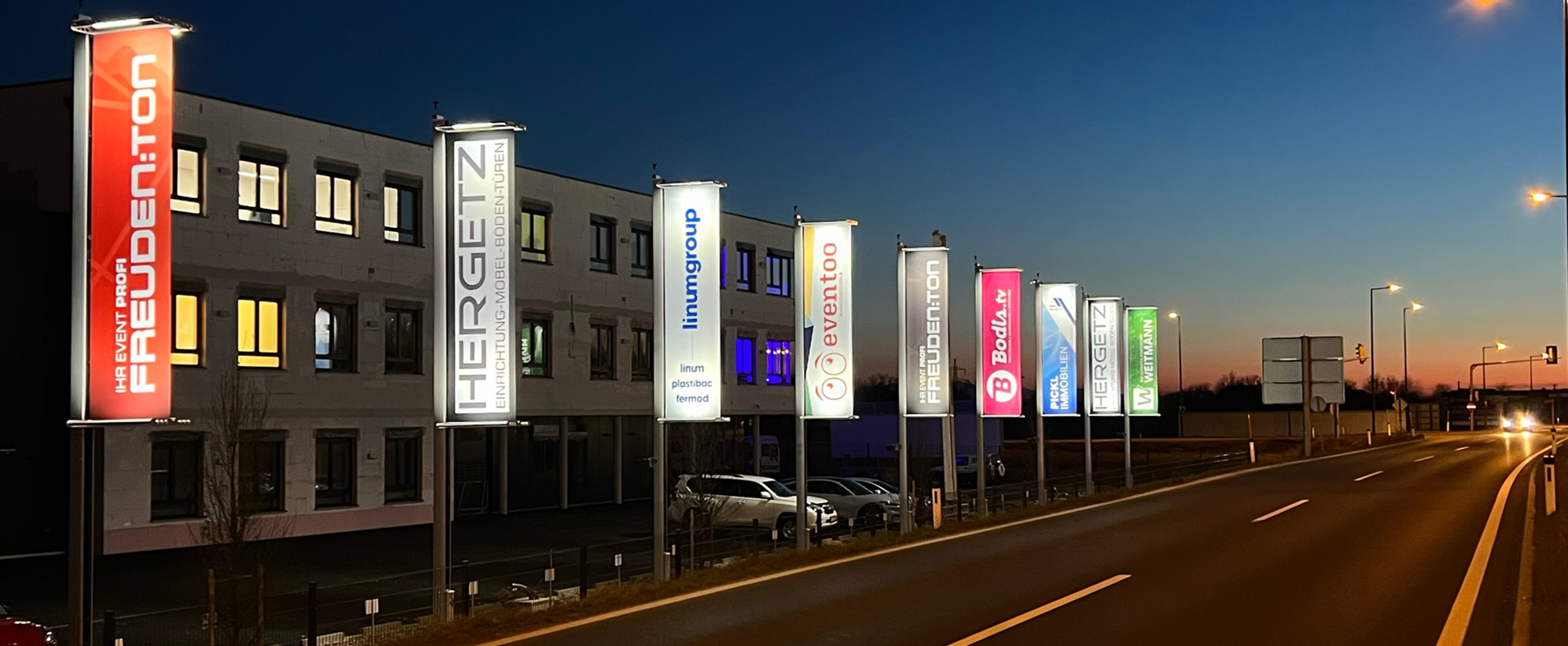 Beleuchtete Fahnen von Huber Signage